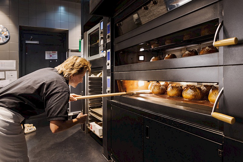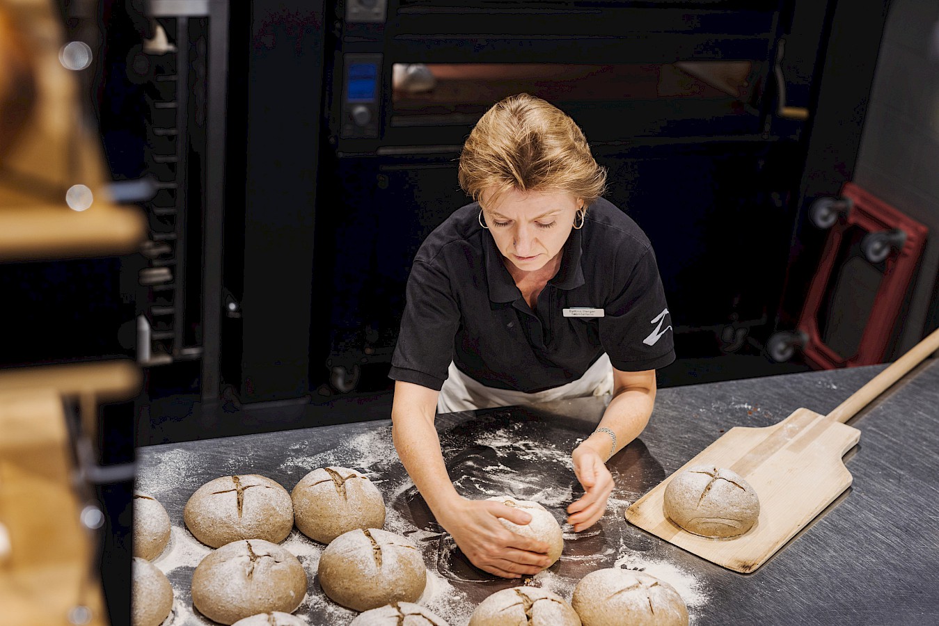In dieser Verkaufsstelle erhalten Sie Einblicke in das Handwerk einer Bäcker-Konditorin. Schauen Sie zu wie abgewogen, geschnitten, gestaubt und in einem speziellen Steinplatten-Ofen Ihr Paillasse- oder «Fyrabigbrot» gebacken wird.